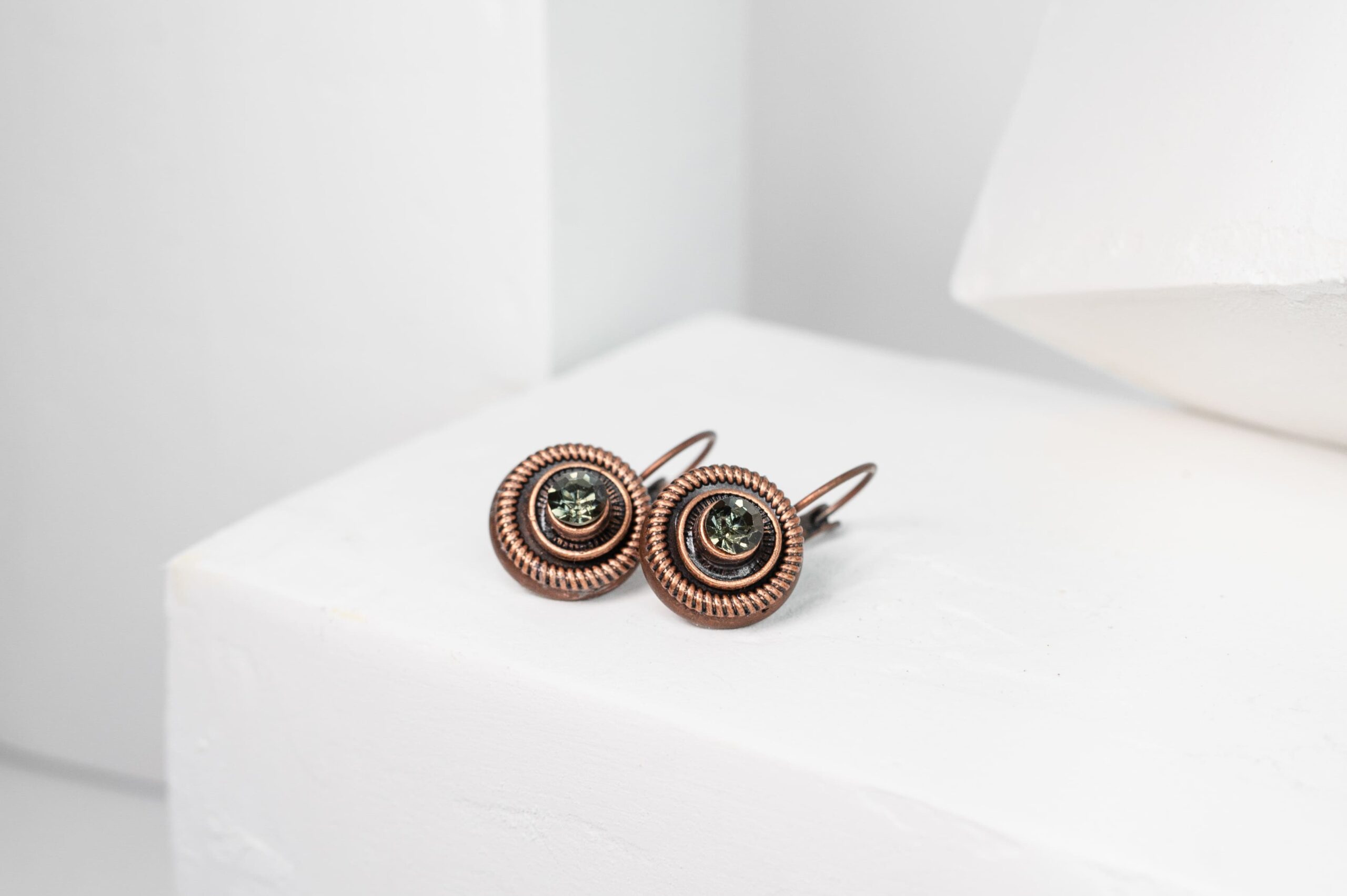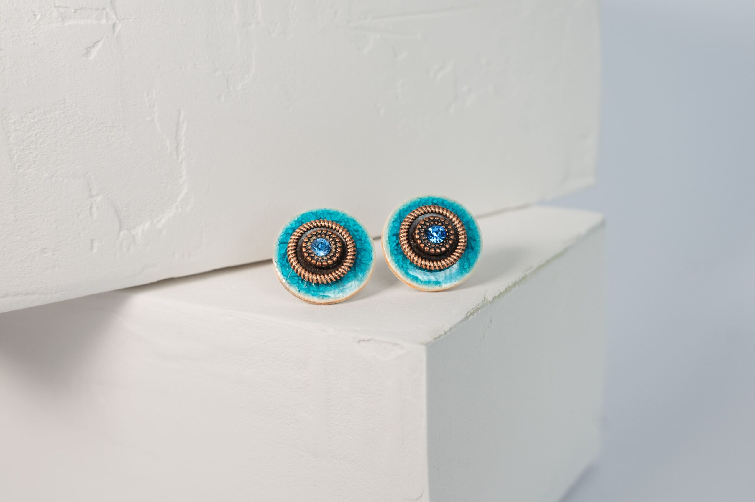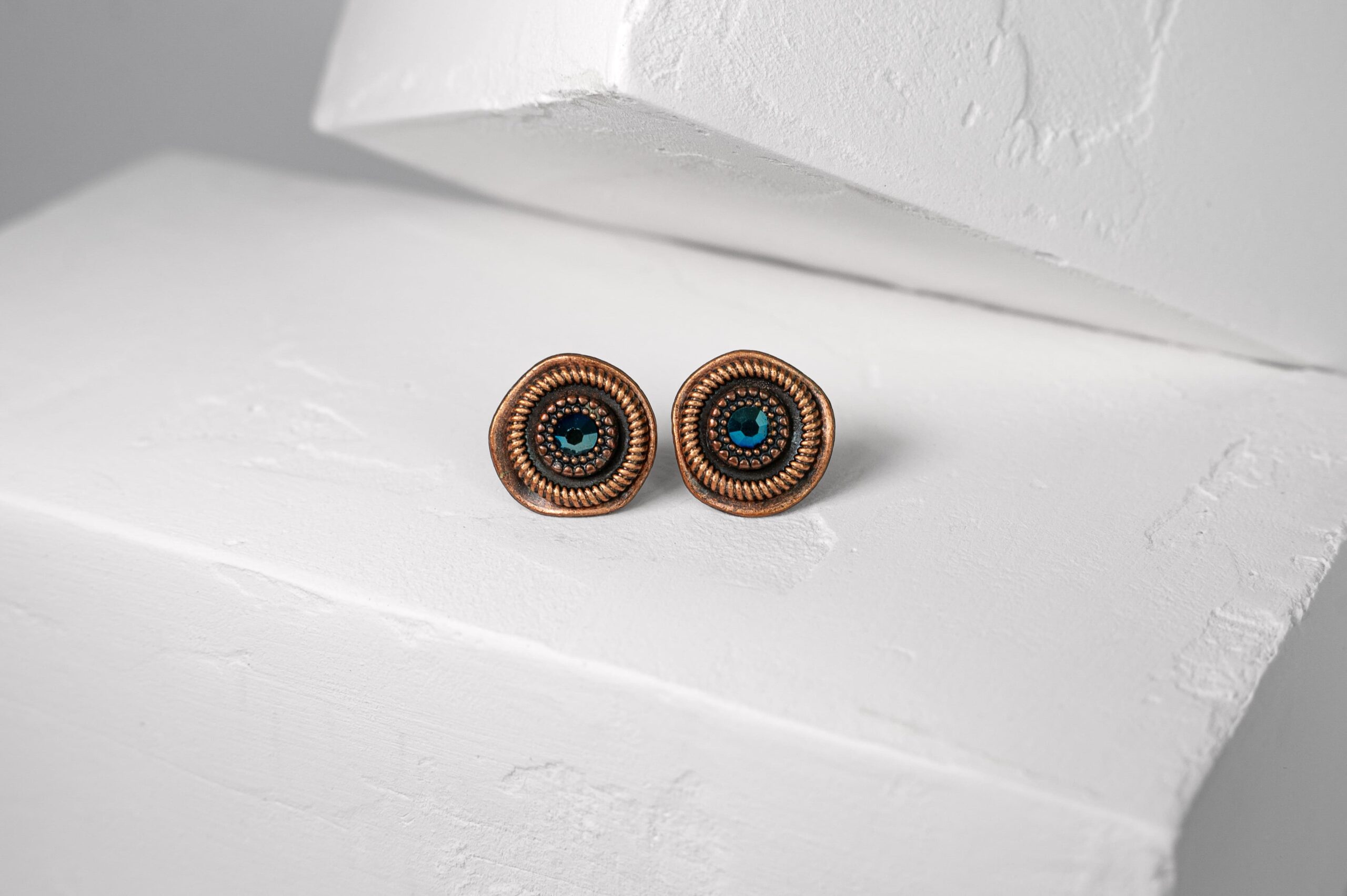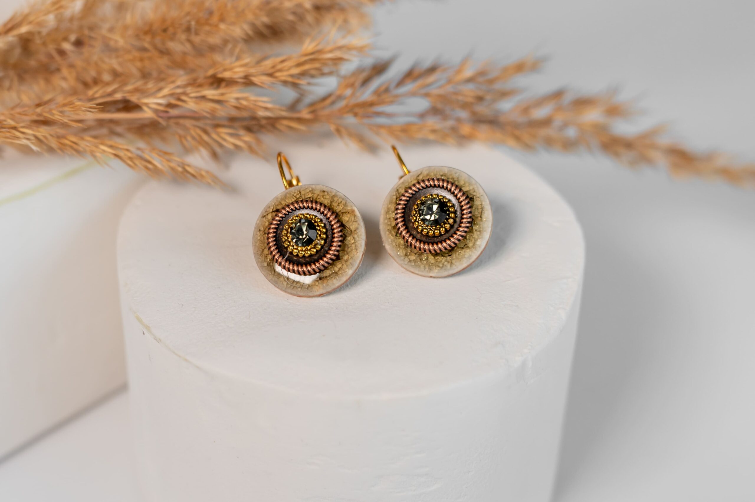 Auskarai su metalinėmis detalėmis ir stiklo akute