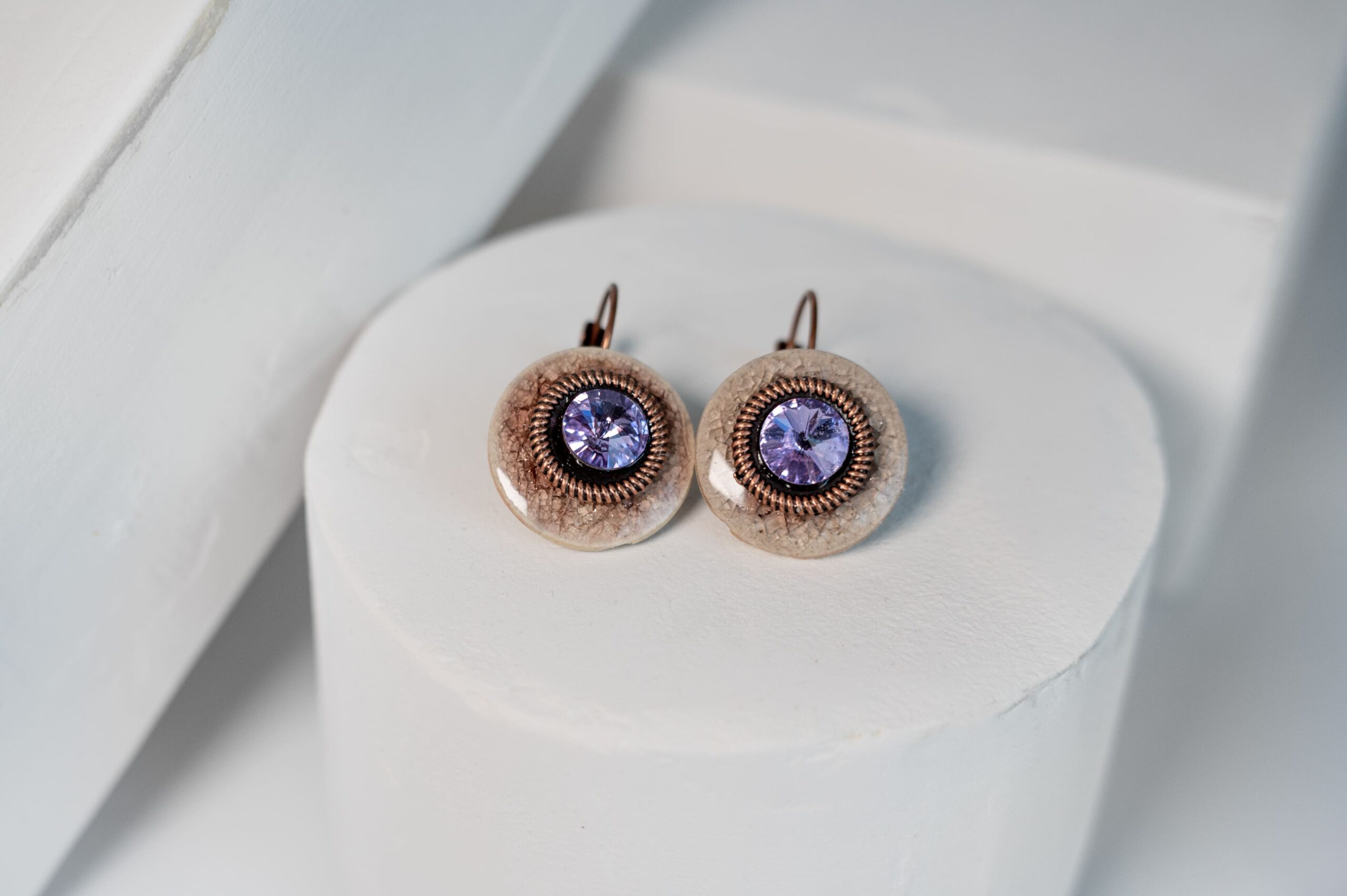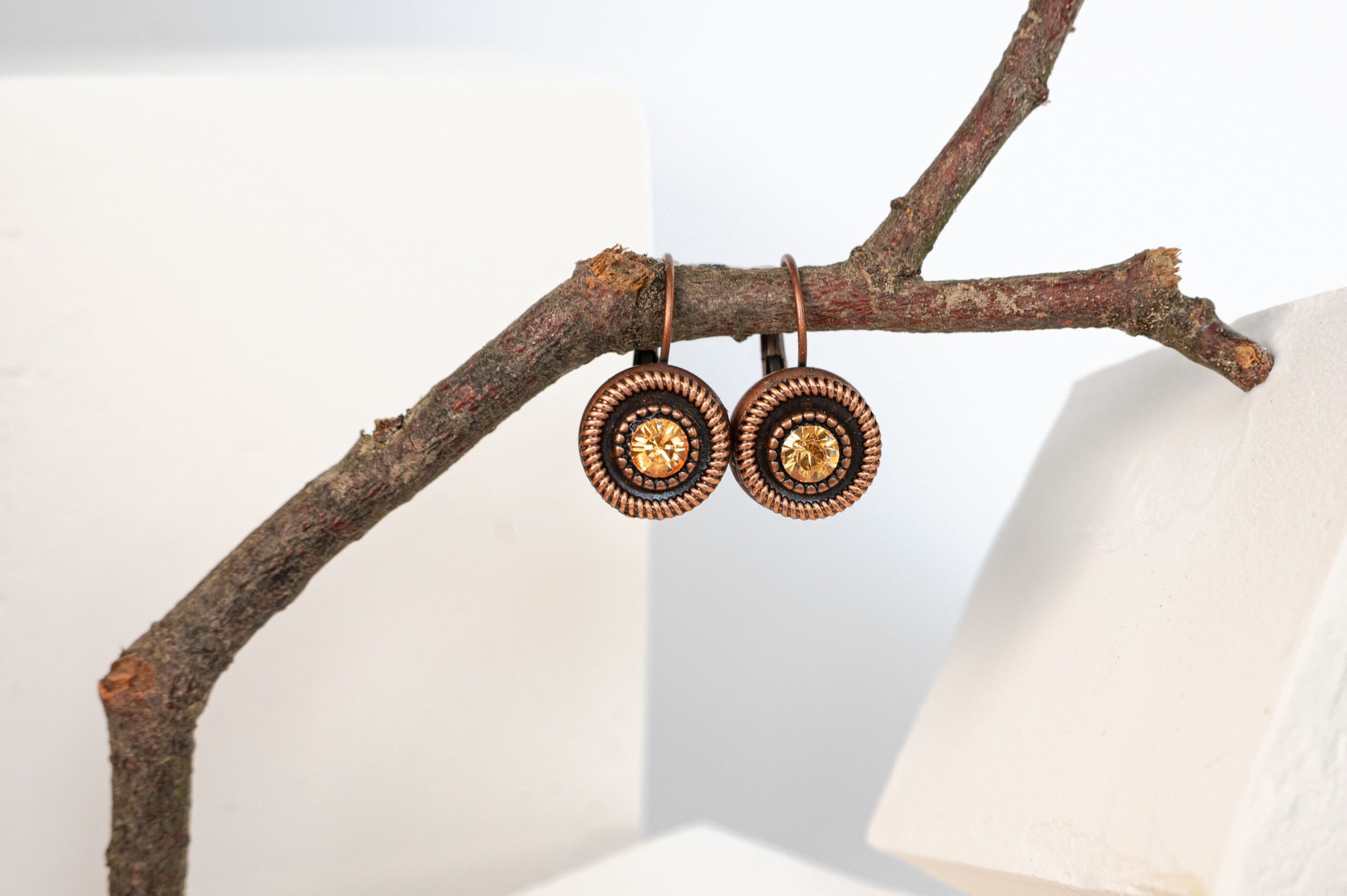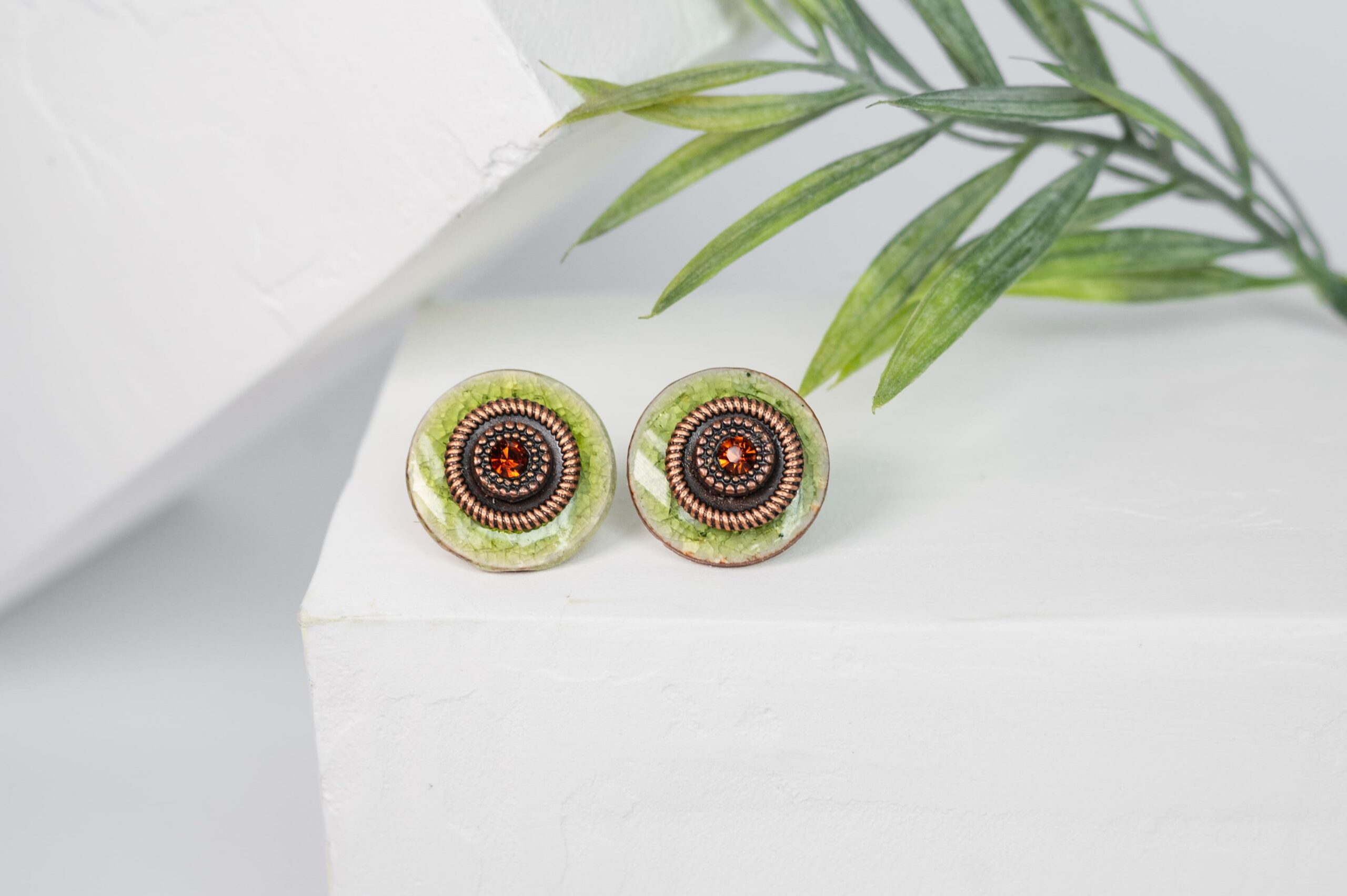Auskarai su metalinėmis detalėmis ir stiklo akute