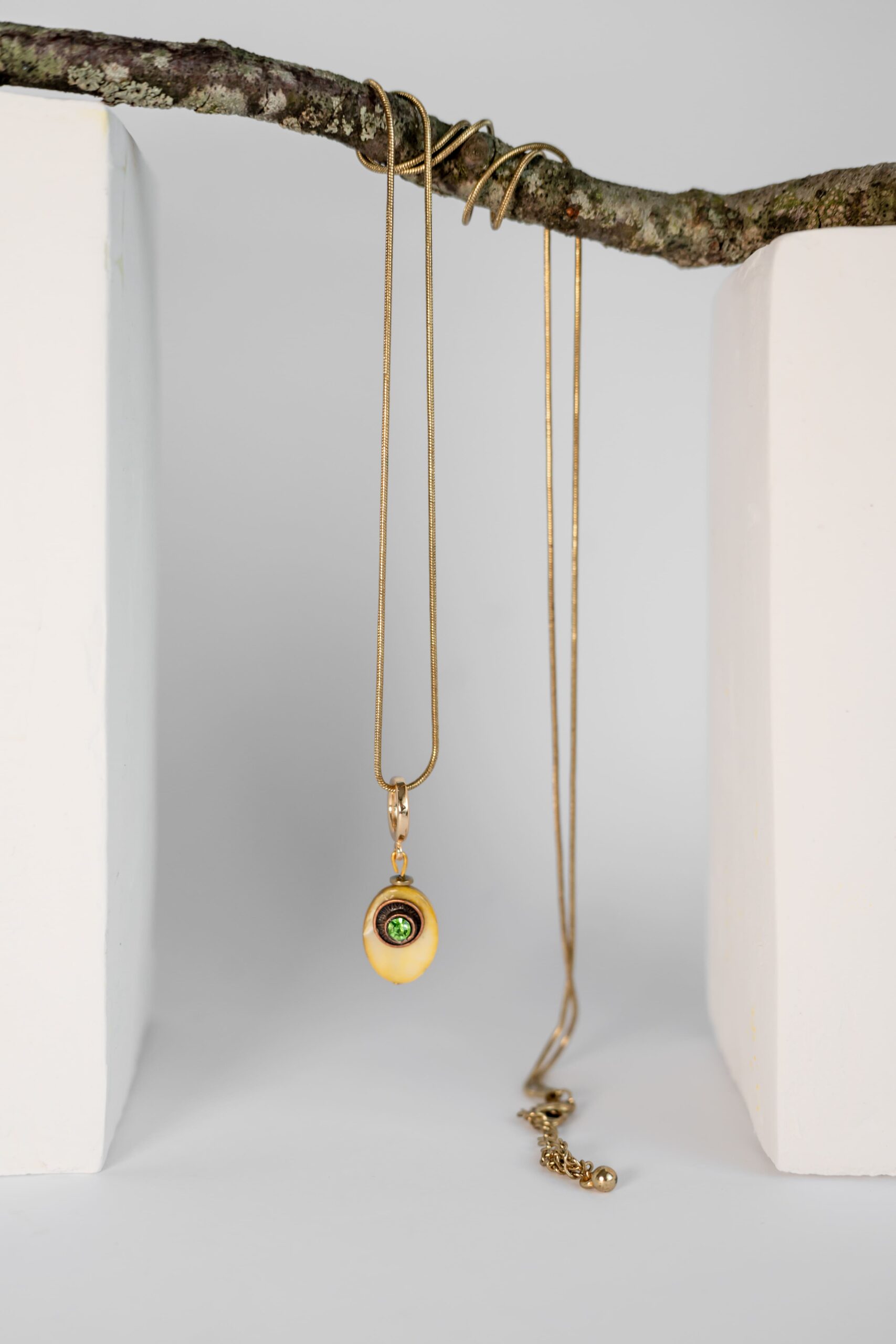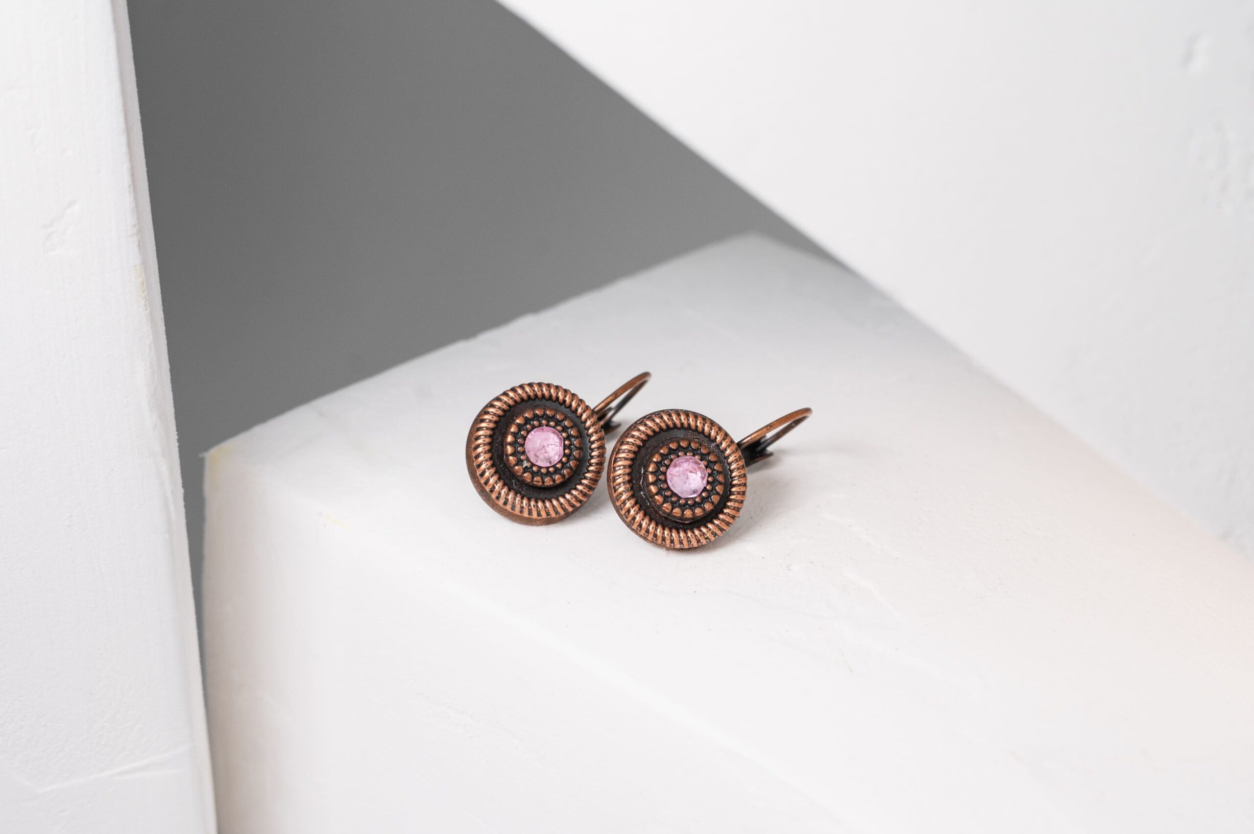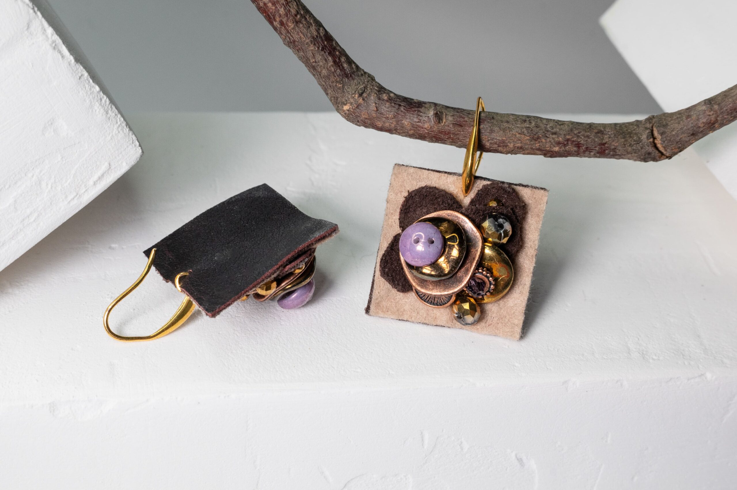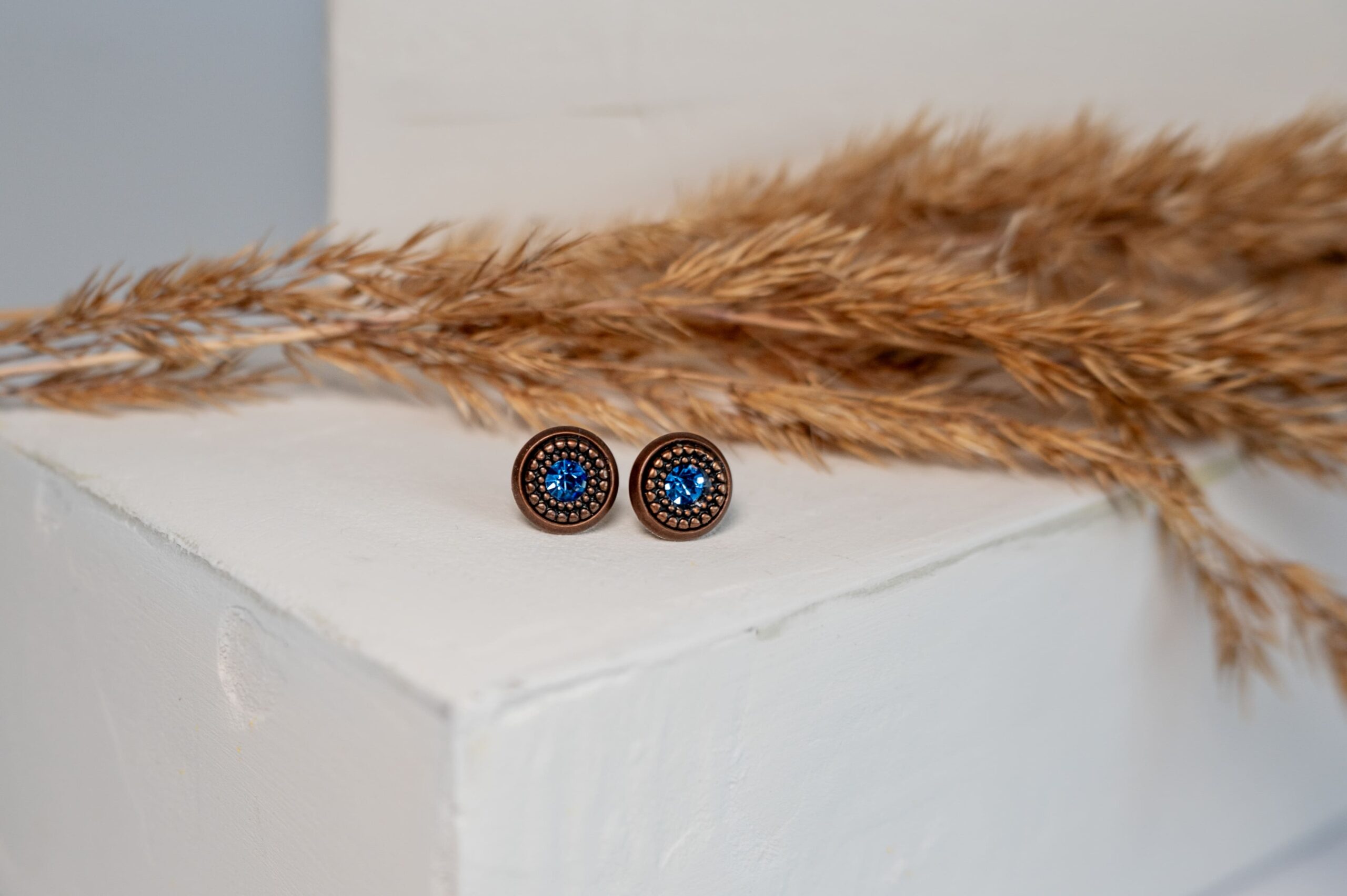 Auskarai su metalinėmis detalėmis ir stiklo akute