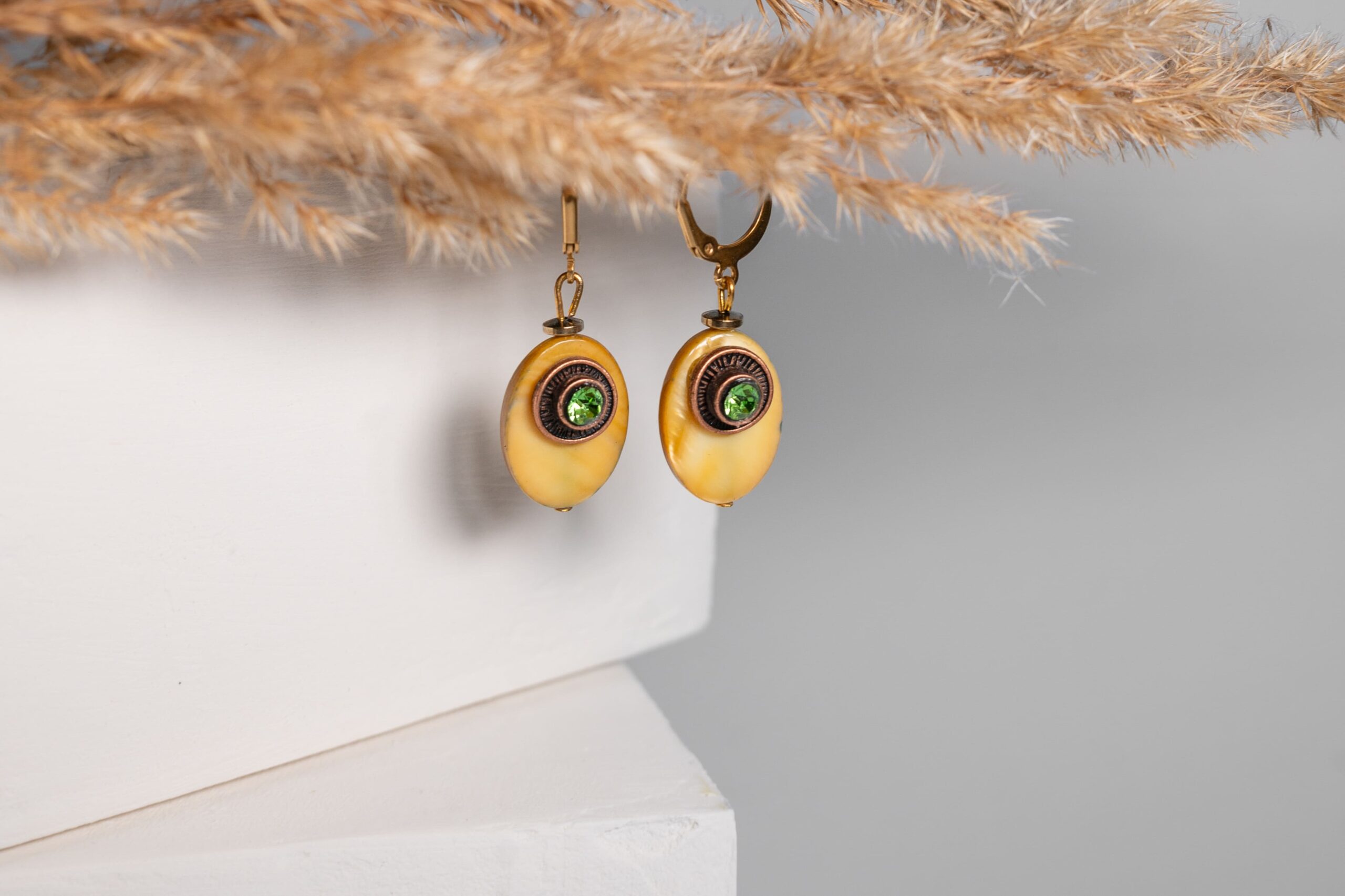 Auskarai su stiklo akute