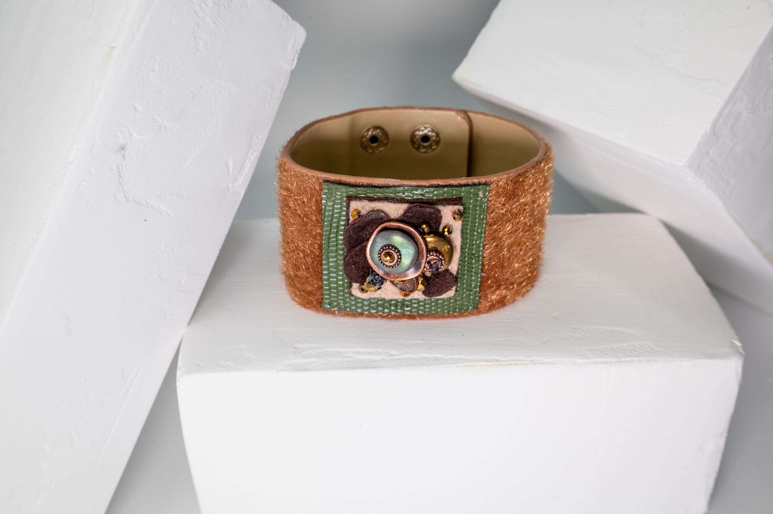 Dirbtinės odos apyrankė su pūkeliu