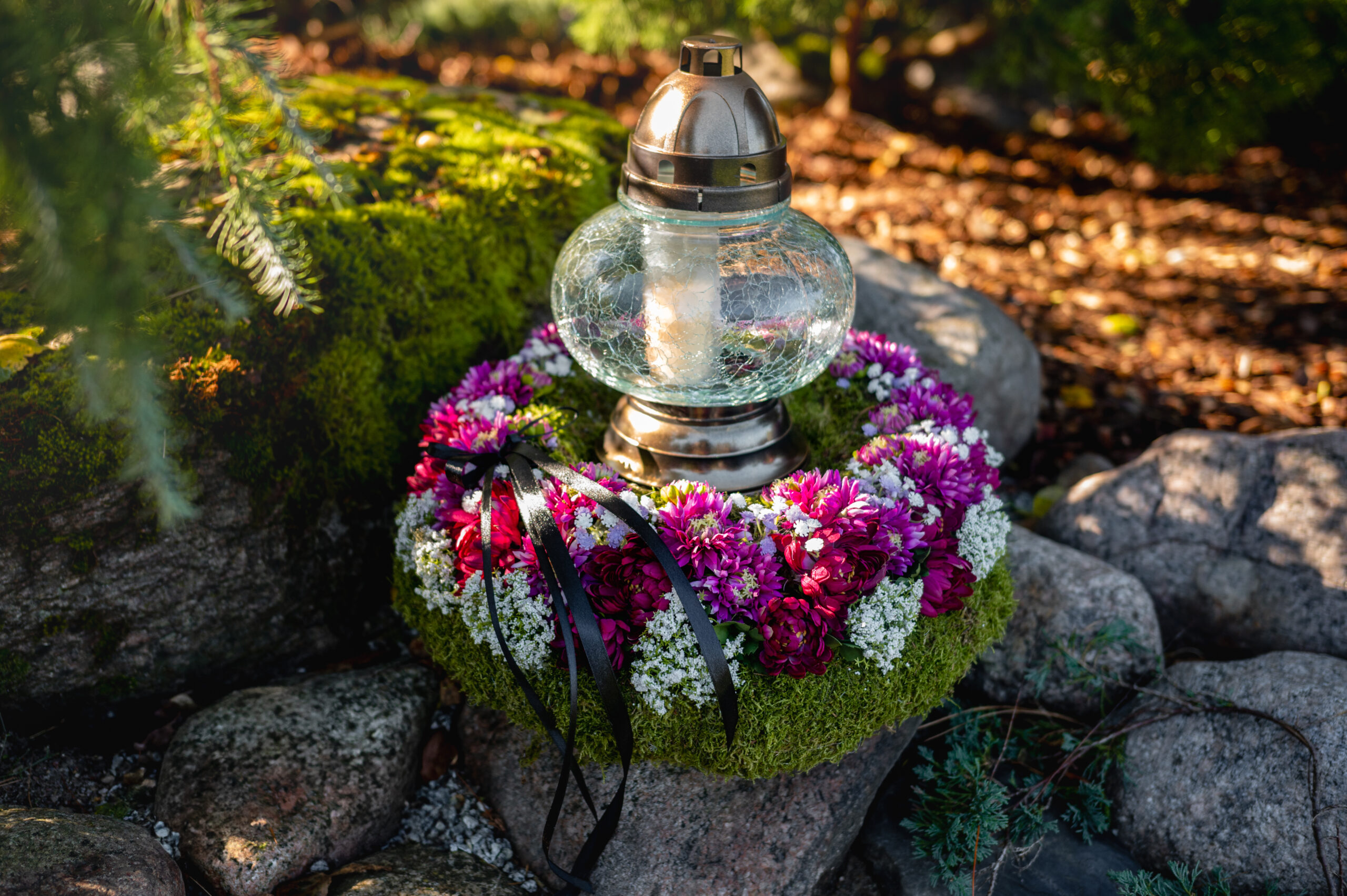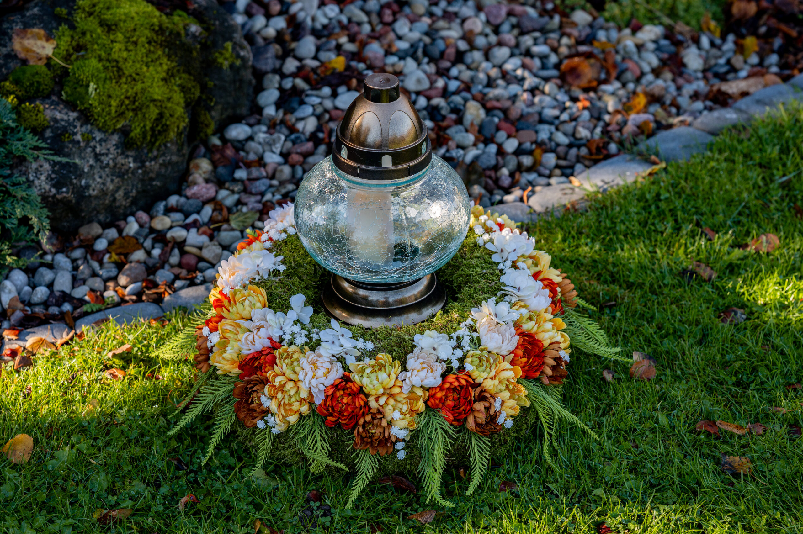 Vėlinių gėlių kompozicija išėjusiems atminti